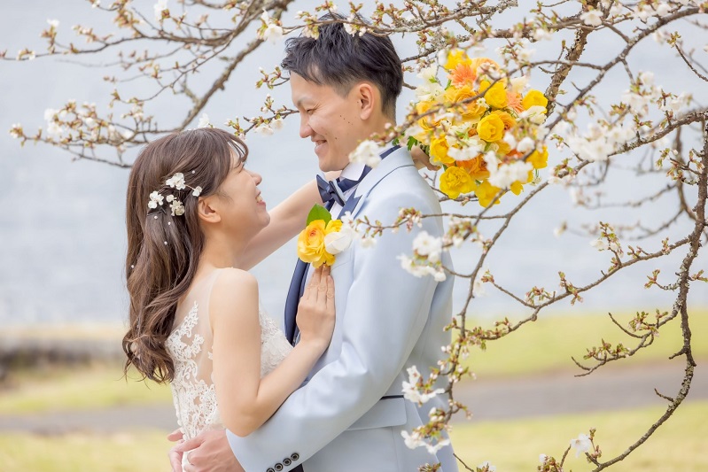 それから、日程はご家族様ともご相談頂き、会場はお休みの日に一度ご見学をしていただき、桜が咲く季節の4月に【箱根神社挙式+龍宮殿】での箱根神社Weddingを行うことが決まりました。また、和装だけではなく、ウェディングドレスも着たいというご新婦様の希望を叶える為に、パーティー途中、お色直しは洋装で行う事になりました。4月が私も楽しみでお2人の結婚式は何をご提案しようとわくわくした想い出があります。